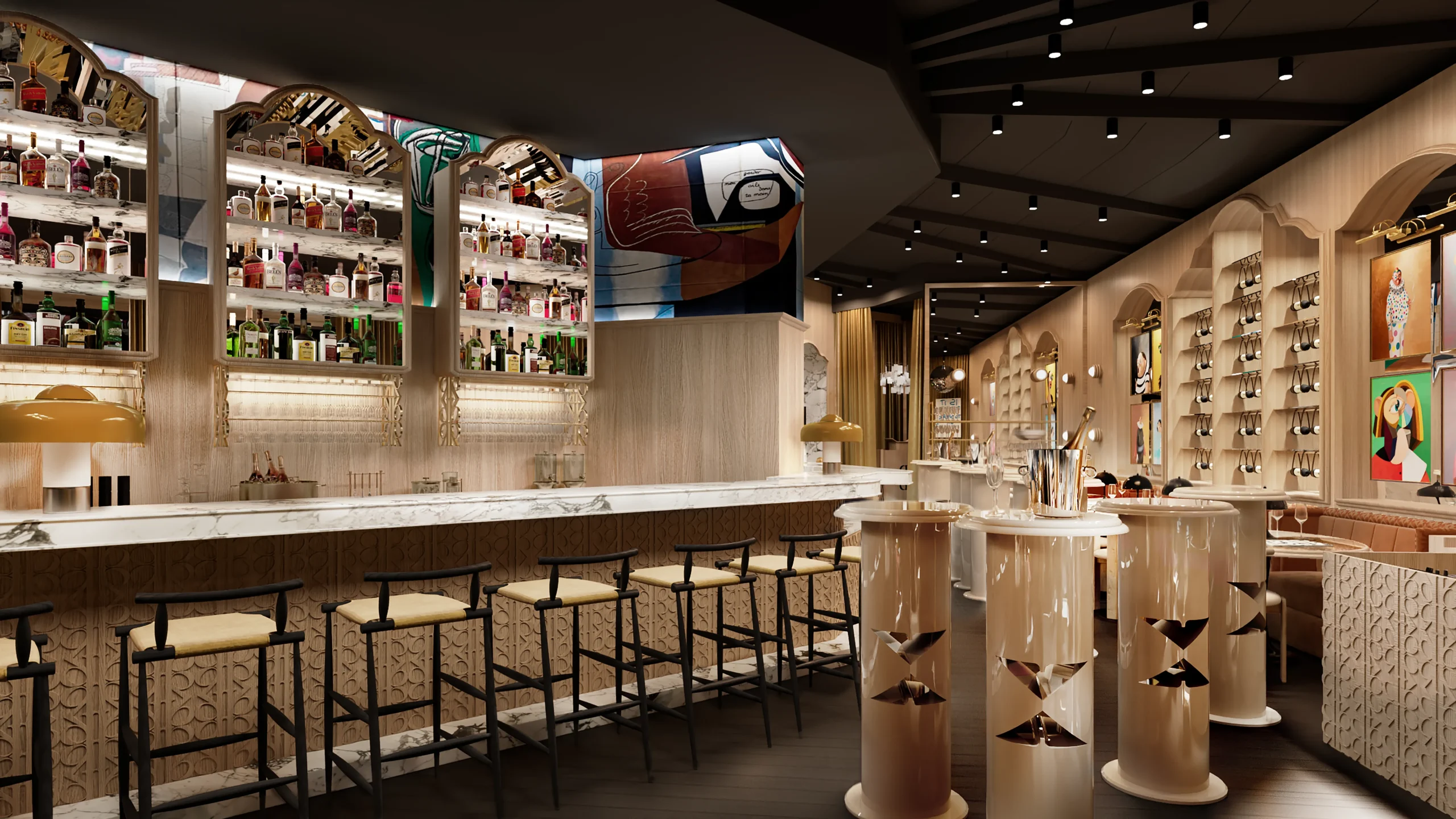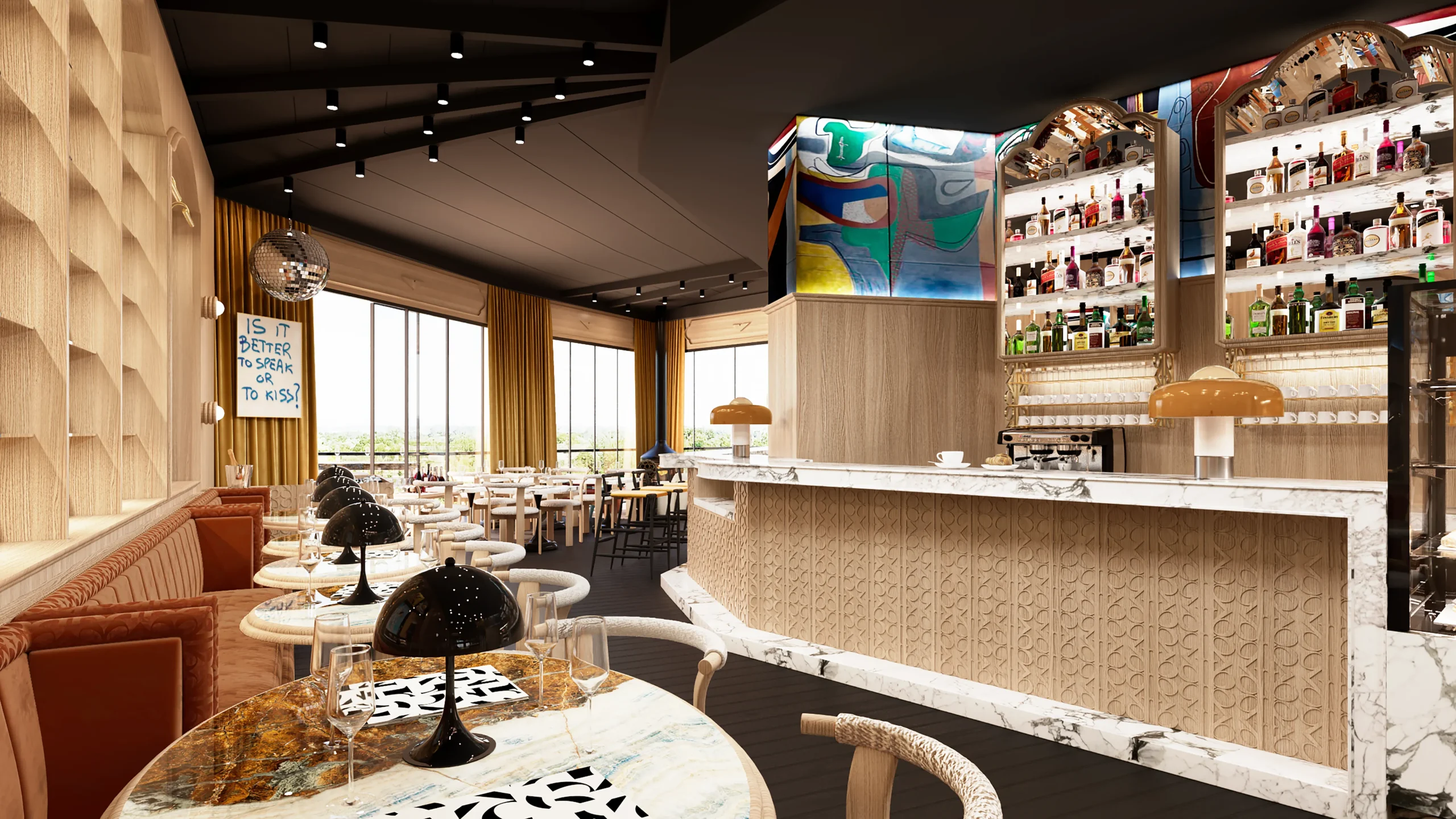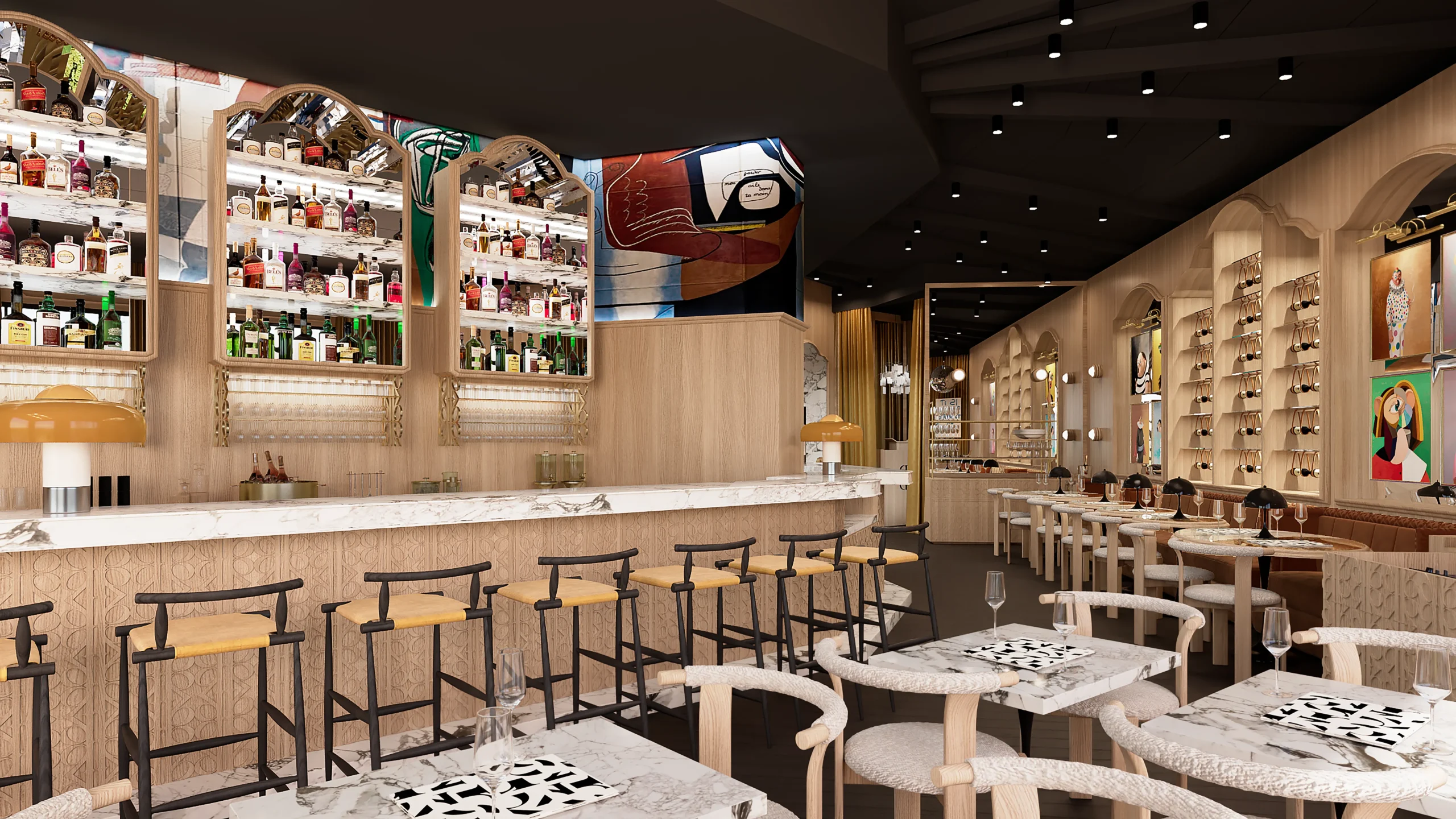 The space aims to be a meeting point where people come together to socialize and experience art and life. In this environment, where time stands still and souls connect, guests will find themselves enjoying a meal in a stylish setting that later transforms into a warm and inviting atmosphere.
