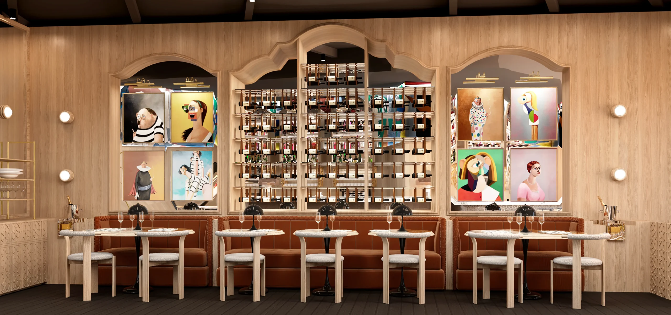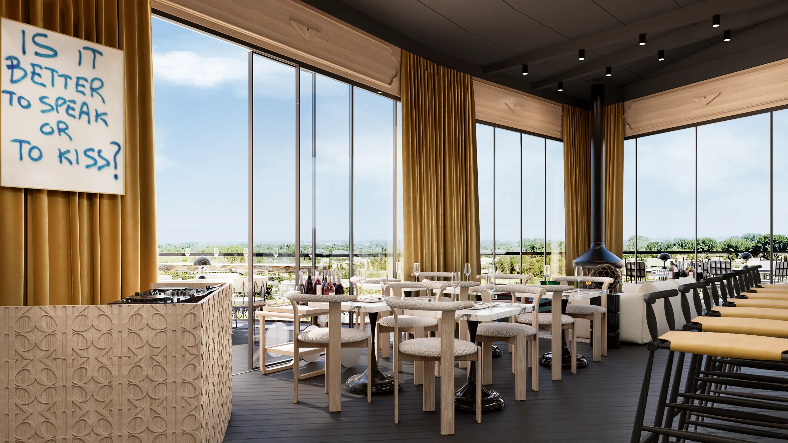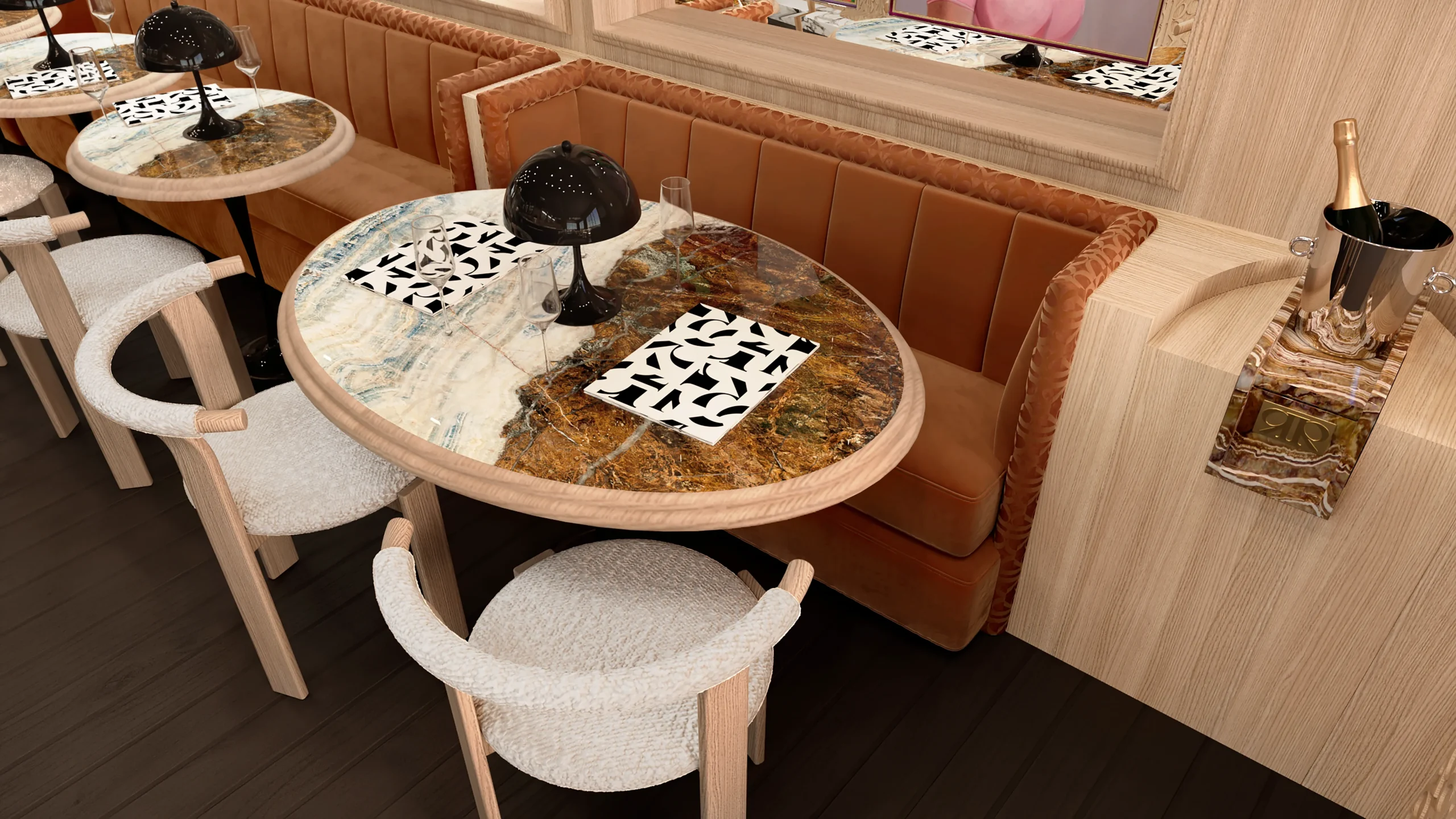 The space aims to be a meeting point where people come together to socialize and experience art and life. In this environment, where time stands still and souls connect, guests will find themselves enjoying a meal in a stylish setting that later transforms into a warm and inviting atmosphere.