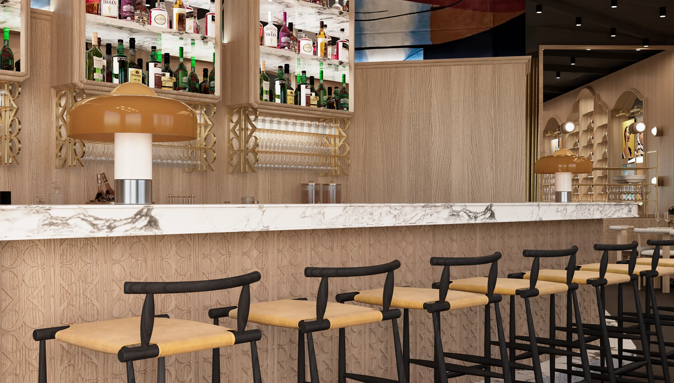 The aesthetics of the venue are shaped at the intersection of nature and life. Our color palette, featuring warm tan, natural wood, and soft cream tones, aims to reflect the elegant spirit of the interior while also highlighting the warmth of social interactions. The rich seating arrangements and furniture designed exclusively for the space provide guests with a sense of warmth, making them feel at home.